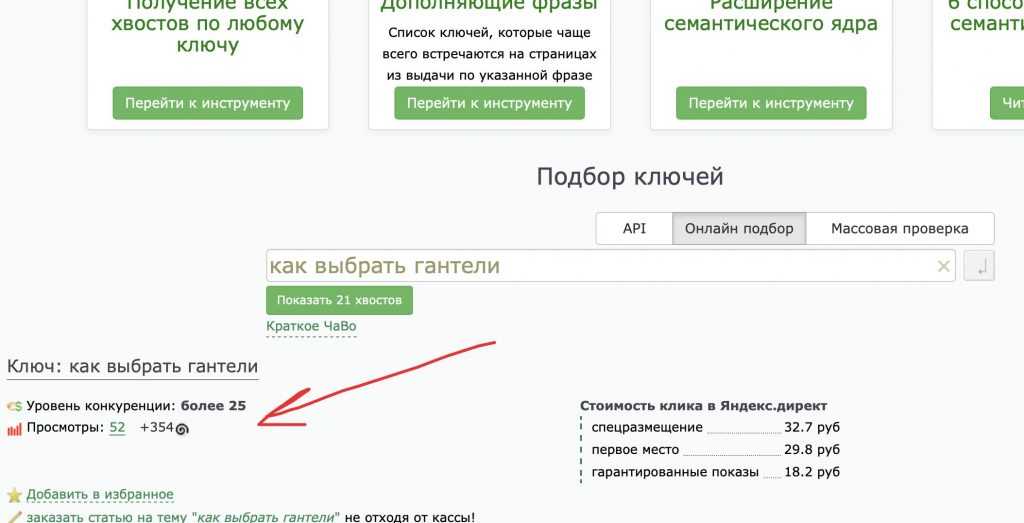 Нам надо, конечно, найти запросы, у которых уровень конкуренции пониже. Поэтому, например, запрос «как выбрать гантели» придется отложить.