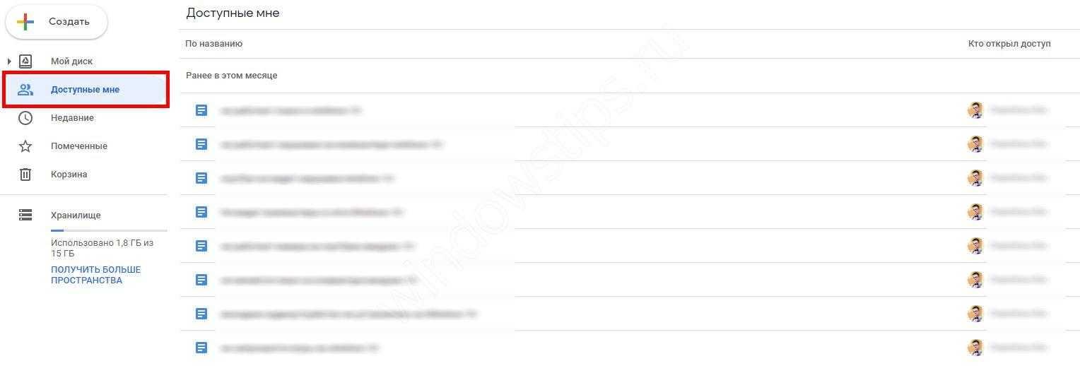 - Доступные мне — приводятся все файлы, которые выложены другими пользователями на Google Drive и доступные для изучения.
