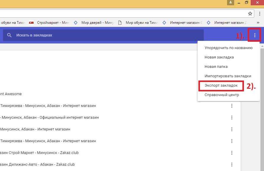 Сохранение закладок браузера в HTML-файл с последующим их копированием из этого файла в другой браузер Способ работает почти во всех распространенных браузерах, в частности, в Google Chrome, Chromium, Яндекс.Браузер, Firefox, Opera, Safari, Internet Explorer. Он может использоваться для переноса закладок как в пределах одного компьютера, так и для их копирования на другой компьютер, восстановления закладок после переустановки браузера, резервного копирования и др. Главным недостатком способа является то, что он не подходит для браузеров, работающих на Андроид-устройствах, а также некоторых десктопных браузеров (Microsoft Edge). В каждом конкретном браузере нужен свой порядок действий, в частности: