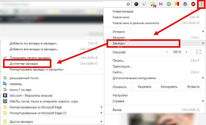 • зайти в меню браузера (кнопка в виде 3 параллельных черточек ≡ ) и пройти по пути: «Закладки» ⇒ «Диспетчер закладок». Или же можно воспользоваться комбинацией клавиш «Ctrl»+»Shift»+»O» («о» — латинское); • в открывшемся диспетчере закладок щелкнуть по пункту «Управление» или «Упорядочить» (в Яндекс.Браузере) и в выпадающем списке выбрать «Экспортировать закладки в файл HTML» либо «Импортировать закладки из файла HTML», в зависимости от того, что нужно сделать. Ну а дальше все интуитивно понятно — указать куда нужно сохранить файл с закладками или же выбрать существующий HTML-файл для импорта из него закладок в браузер.