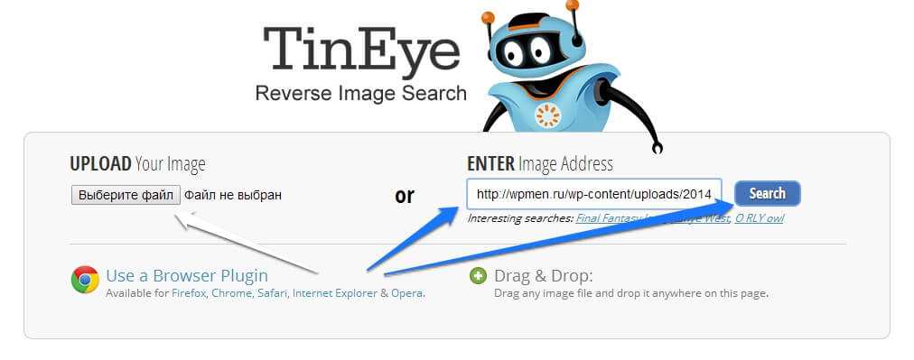 - TinEye – чтобы использовать этот инструмент, вам нужно добавить ссылку на изображение в строку поиска, чтобы найти веб-сайты и магазины, предоставляющие тот же продукт. С момента создания на платформе был произведен поиск более 19 миллиардов изображений, что делает его отличным ресурсом для обратного поиска изображений.