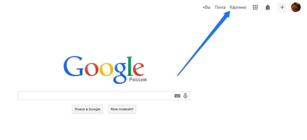 Вы также можете нажать ссылку «Картинки» в правом верхнем углу главной страницы Google, чтобы быстро перейти в нужное место.
