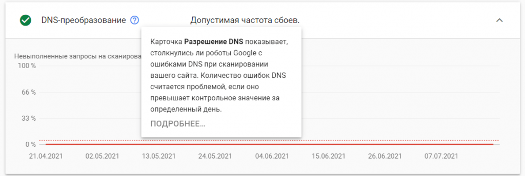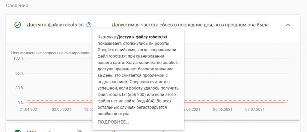 Как и в случае с файлом robots.txt, частота ошибок DNS считается проблемой после превышения заданного базового значения в день.