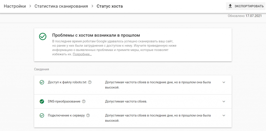 Есть 3 возможных статуса, указывающих на здоровье ваших хостов. Вот что они означают и какие критерии использует Google при оценке проблем с хостом: