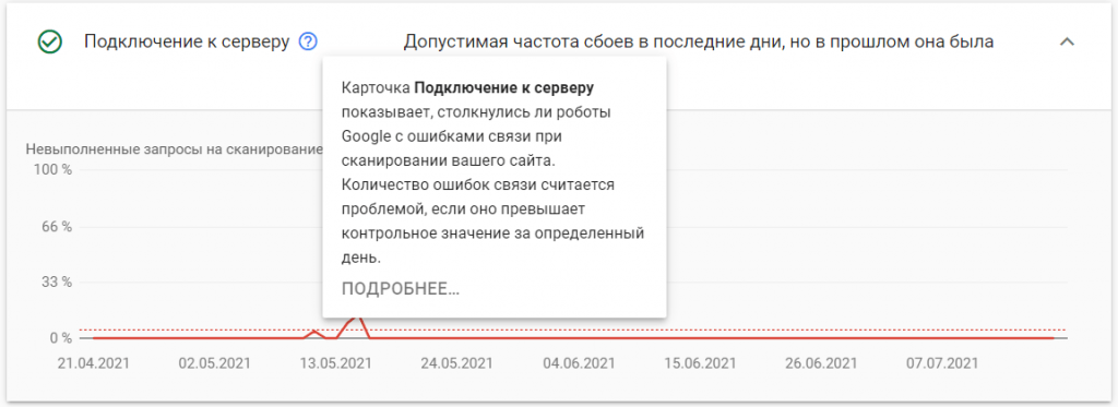 Как и в случае получения файла robots.txt и DNS преобразования, ошибки подключения к серверу считаются проблемой, если они превышают определенный базовый уровень на день.
