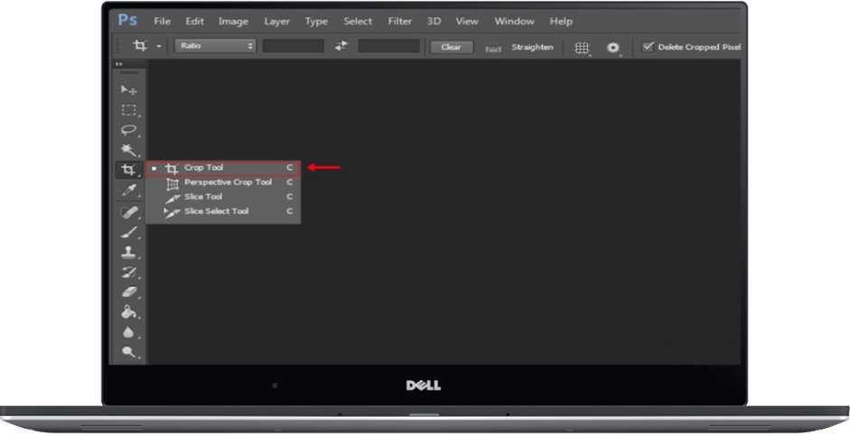 - Выберите инструмент для обрезки или Crop Tool в меню инструментов;