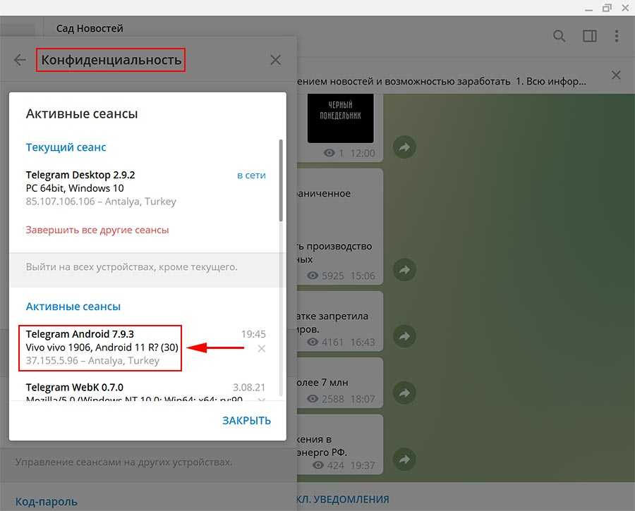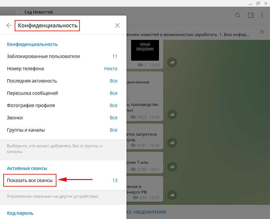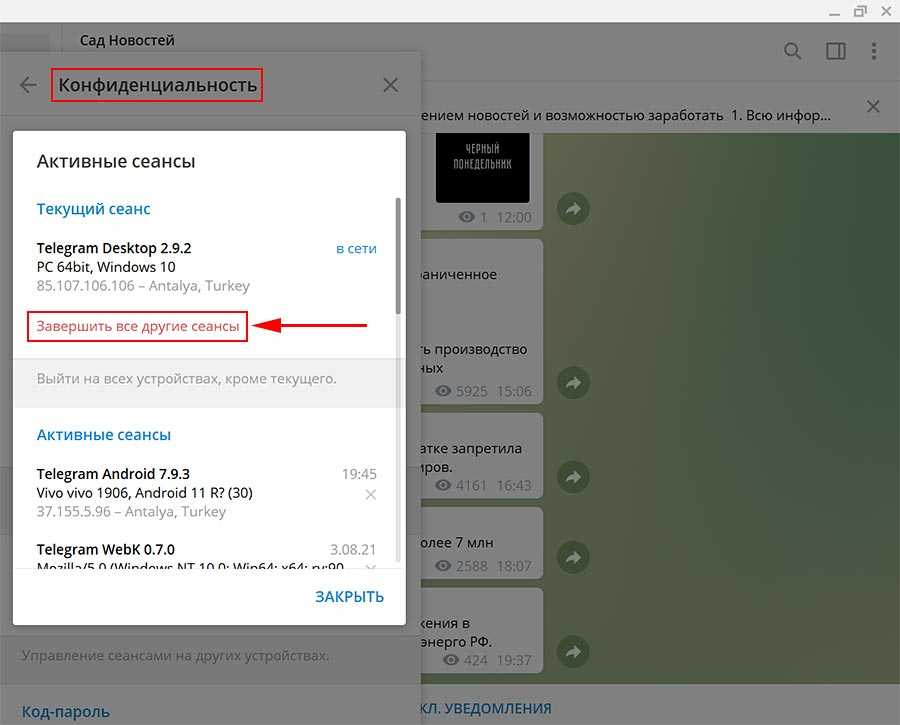 3. Кликните по красной надписи «Завершить другие сеансы».