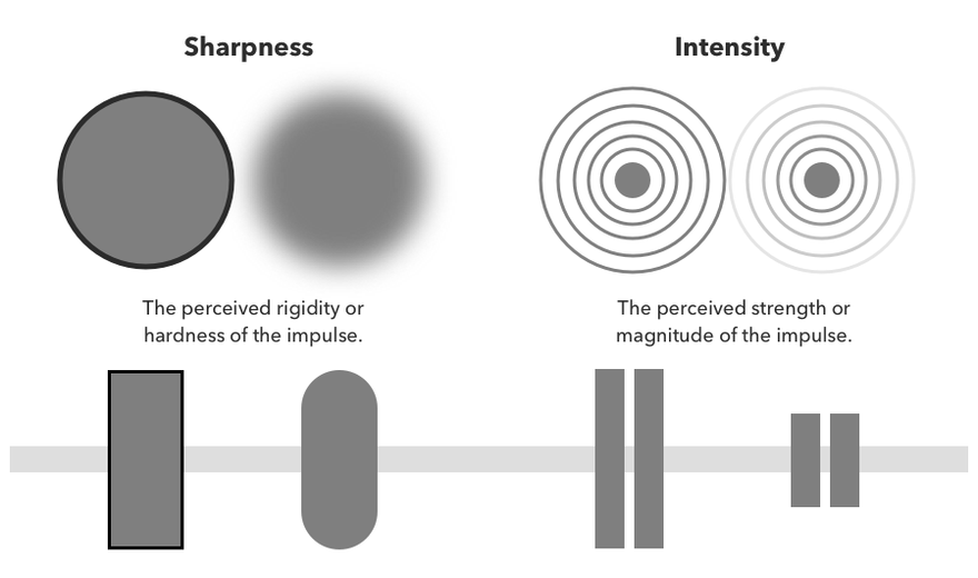 Интенсивность – воспринимаемая сила или величина импульса. Чем интенсивнее импульс, тем сильнее для пользователя тактильные ощущения.