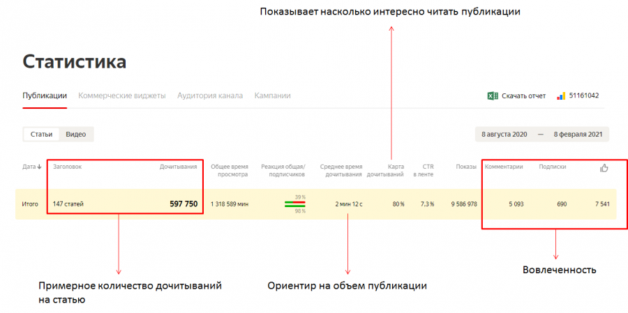 Если мы разделим количество дочитываний за полгода на количество статей, то определим их прогнозируемое число. Это больше для ориентира.