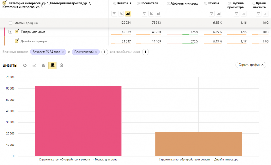- Этот же сегмент надо проверить на аффинити-индекс по нашей тематике. Он находится в разделе долгосрочные интересы. Попросим отправить скриншот.