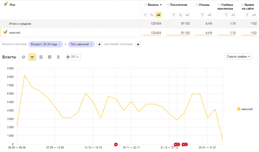 Теперь второй раунд проверки. Как правило, авторы подключают Яндекс.Метрику к своему каналу, чтобы следить за показателями. Мы знаем, что портрет нашего целевого покупателя – женщины 25–35 лет. Поскольку наша цель заключается в продажах, то нам надо понять, насколько высока вероятность попасть в нужную аудиторию. Что еще в нашем случае попросить у авторов каналов?
