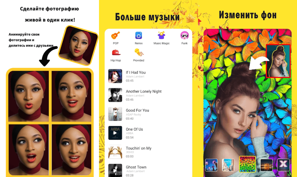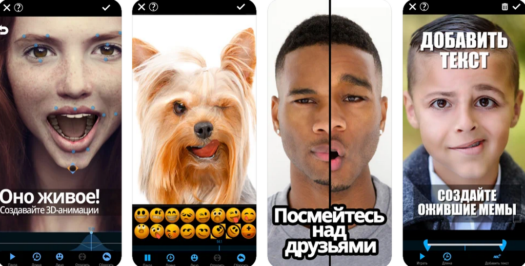 С помощью этого приложения можно заставить лица двигаться под музыку. Интерфейс простой и понятный для обычного пользователя. Имеется много пресетов и настроек для работы с эмоциями на лицах в загруженных снимках.