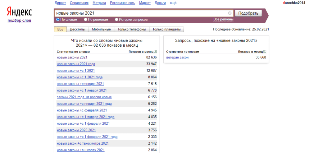 В сервисе от «Яндекса» в левой колонке выдачи вы можете найти какой-нибудь основной тег и ключевые слова, уточняющие его. А в правой — фразы, близкие по теме.