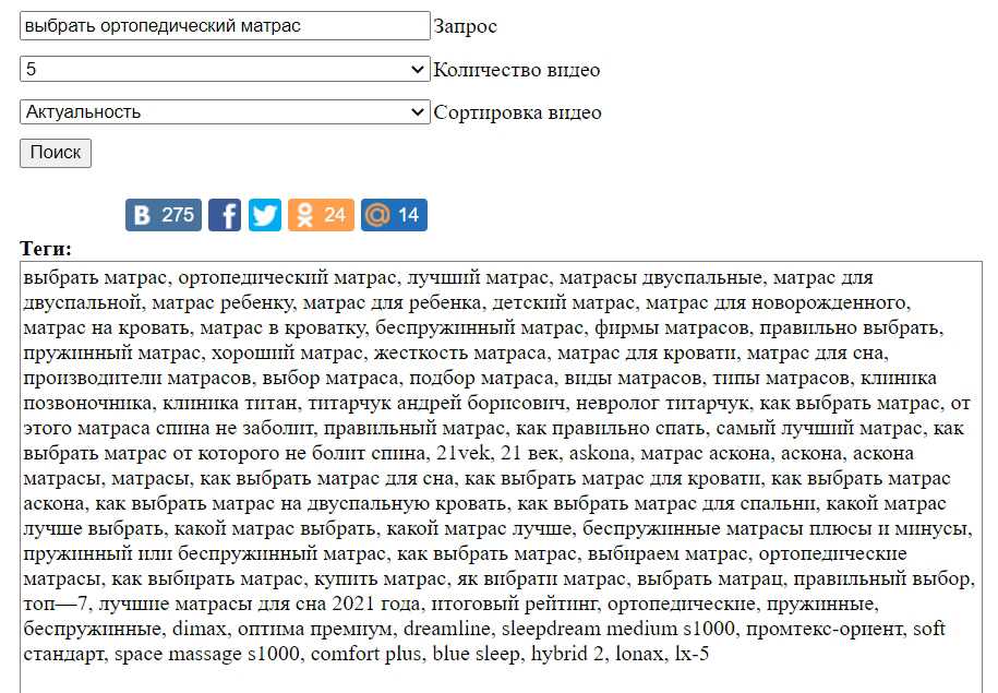 В своей работе подобные сервисы используют информацию о видео из топа выдачи на «Ютубе». Они находят ролики по заданному вами слову, смотрят, какие теги использованы в них, обрабатывают их и выдают упорядоченный по популярности список.