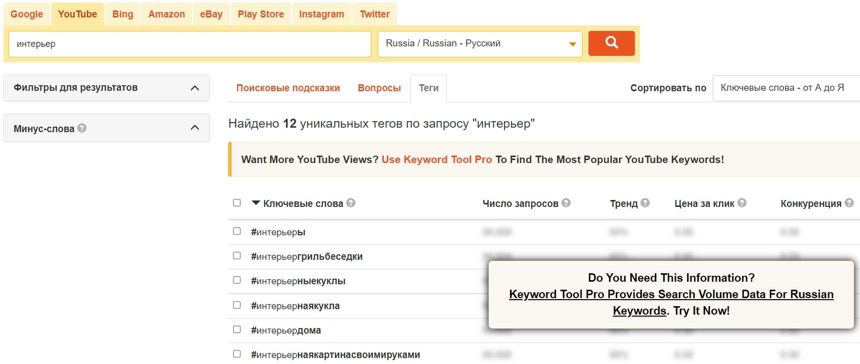 При подборе тегов на «Ютуб» учитывайте, что сервисы показывают число запросов в месяц не на видеохостинге, а в поисковых системах. То, что активно ищут в «Яндексе» и Google, могут мало искать на YouTube и наоборот, поэтому количество трафика спрогнозировать не получится. Зато употребляя предложенные сервисами поисковые фразы вы можете оптимизировать ролик под поисковую выдачу и получать часть просмотров оттуда.