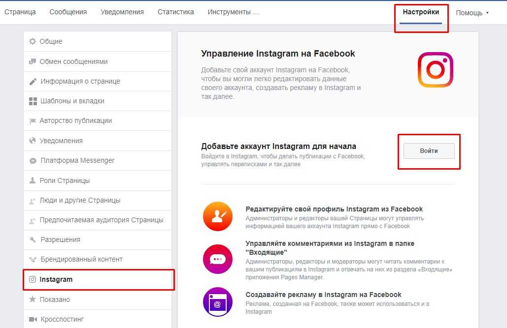 Как происходит синхронизация Фейсбука и страницы Инстаграма