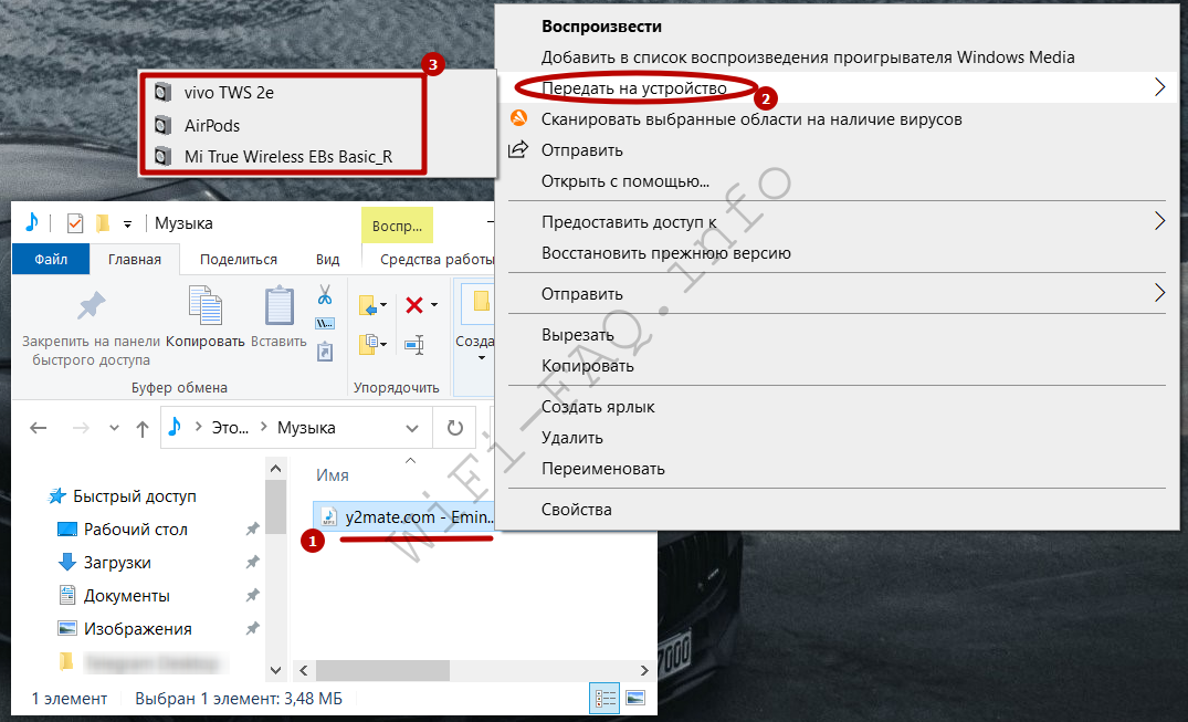 - Выберите любой файл (фотография, аудио или видео) на компьютере, который нужно транслировать, нажав правой кнопкой мыши.