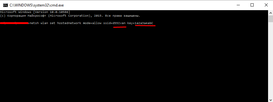 Тут d55Ivan key – название подключения, 1a2a3a4abC – пароль к нему. Можно эти значения менять произвольно, не забывая о том, что используются только цифры и латинские буквы.