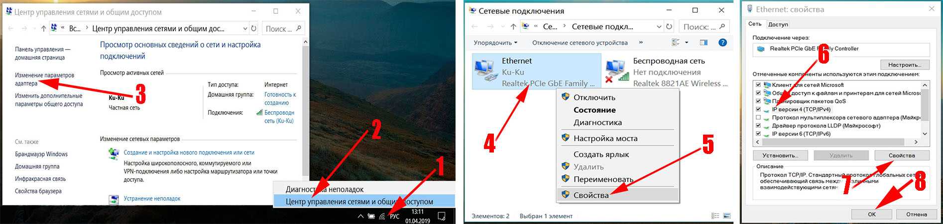 - Клавиша “Пуск” ->подраздел управления -> пункт с настройкой сетей и общего доступа.
