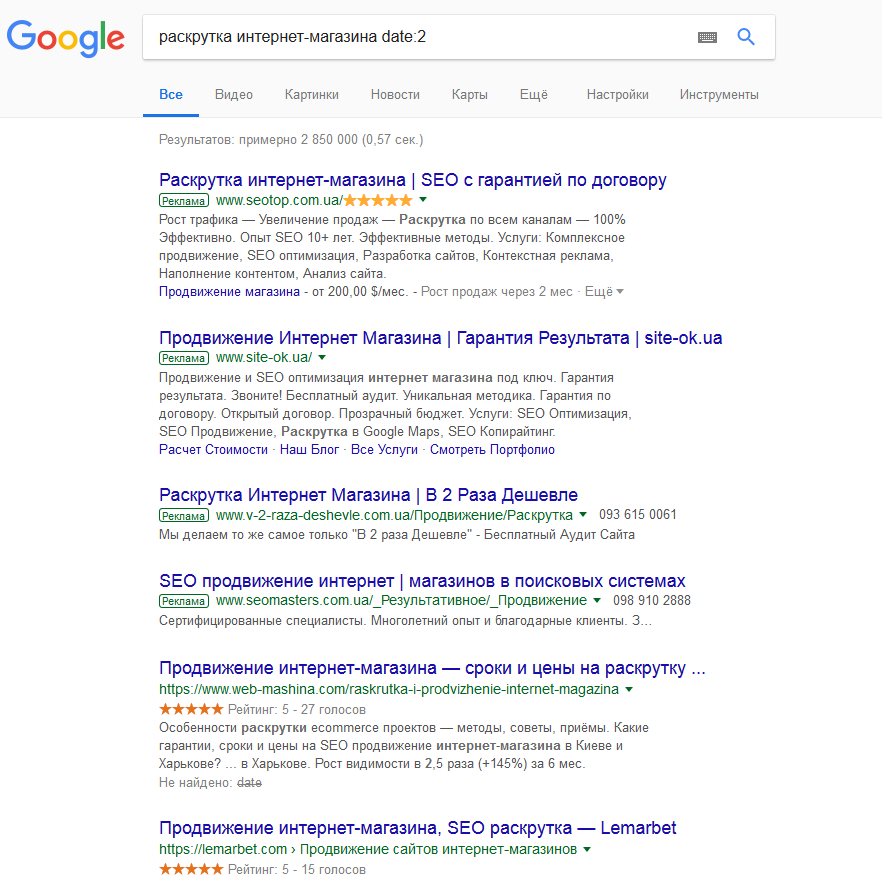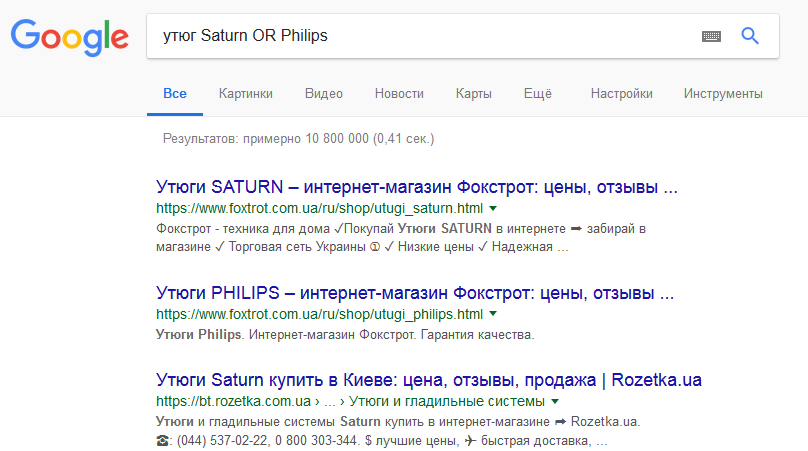 Таким образом можно комбинировать абсолютно любые операторы. Это ускоряет поиск и работу с поисковой выдачей в целом.