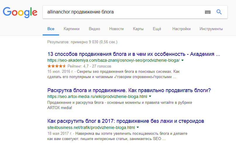 Помогает найти сайты, в URL-адресе которых встречаются указанные вами слова. Для более эффективного поиска рекомендуется писать запрос на английском или транслитом.
