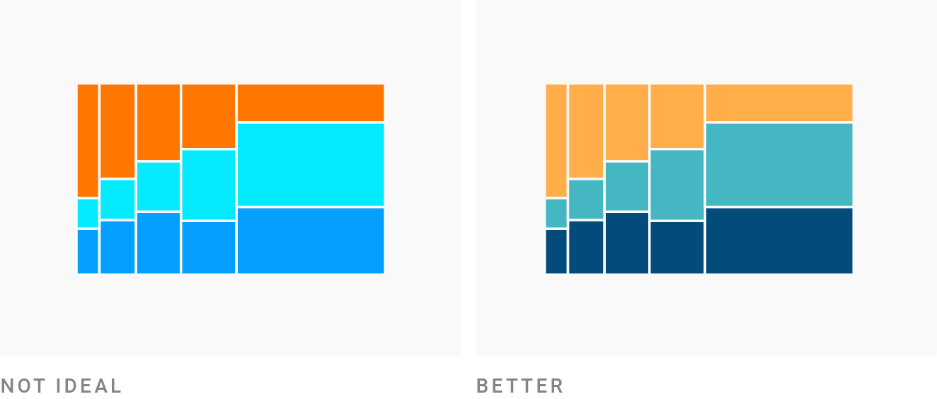 Кроме того, в следующий раз, когда вы будете создавать визуализацию данных и не будете довольны цветами, проанализируйте их в цветовом пространстве HSV/HSB, например с colorizer.org: