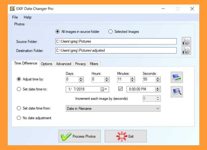 - Настройте или установите «дату съемки» цифровых фотографий — Компенсация неправильных настроек камеры или различных часовых поясов в течение нескольких секунд по всей папке с изображениями.