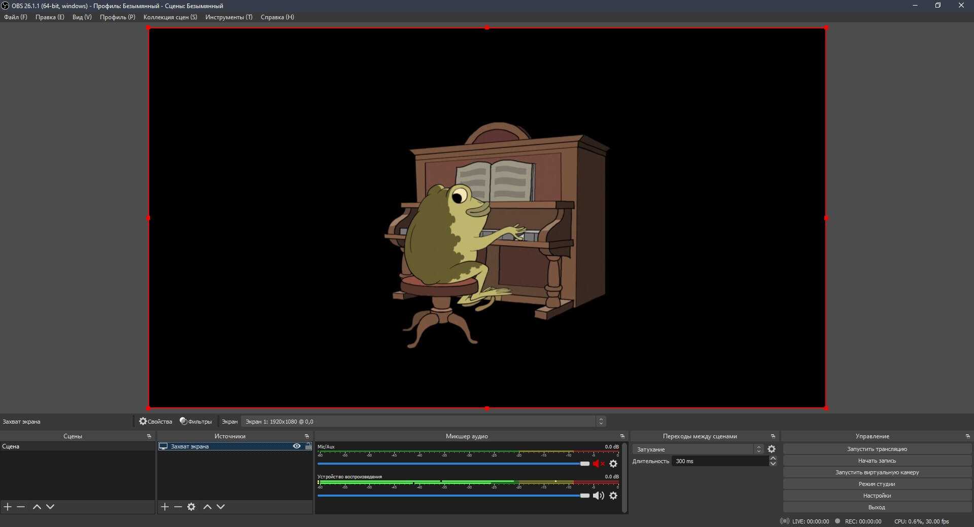 - Нажмите «OK». Это требуется, чтобы принять условия использования и открыть главное окно OBS Studio.