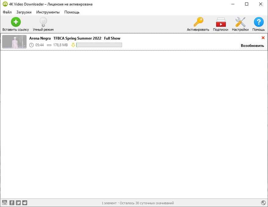 - в бесплатной версии разрешено закачивать 1 видео за один раз и 10 закачек в день;