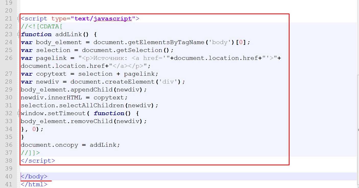 Исходный код содержит теги, ссылки на скрипты и изображения, описание страницы и конечно же сам текст. Такой метод гарантированно позволит провести копирование, однако материал придется редактировать, удаляя лишние элементы. Инструкция:
