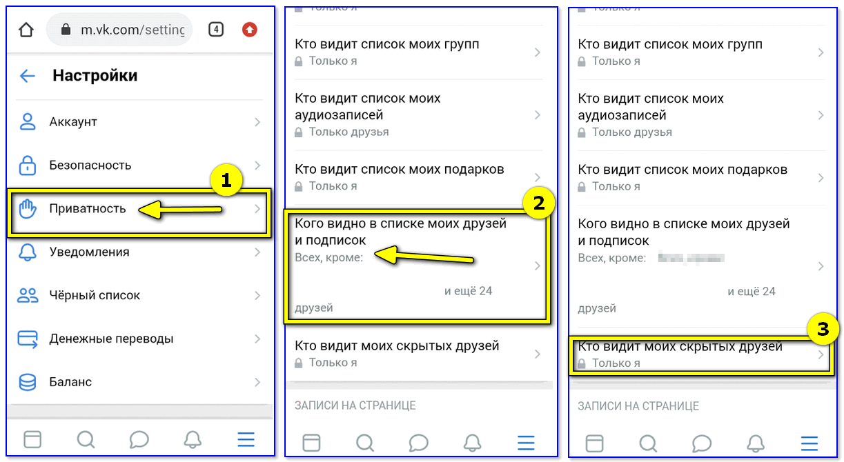 Способ скрыть друзей в мобильной версии ВКонтакте через телефон