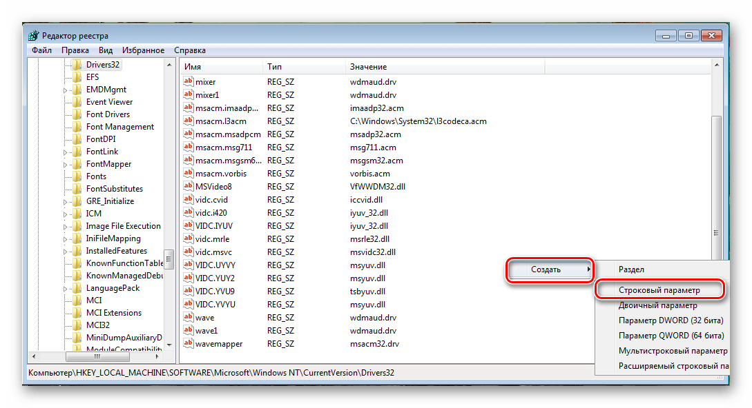 Назовите его «wavemapper», нажмите по нему два раза и в поле «Значение» введите «msacm32.drv».