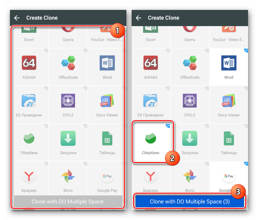 Из общего списка установленных приложений выберите одно или несколько нужных. Для создания копии нажмите кнопку «Clone with DO Multiple Space».