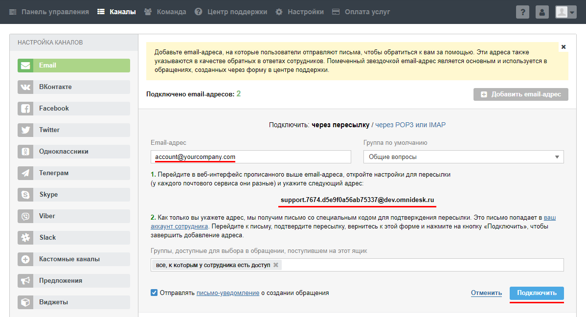 1) Подключите ящик к Омнидеску через пересылку, следуя инструкции в форме подключения почтового ящика.