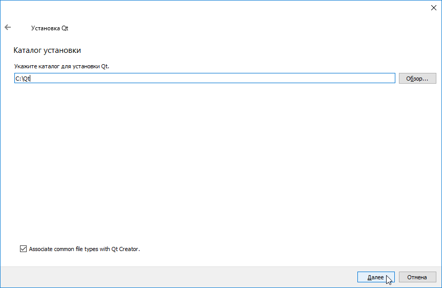 На данном этапе вы должны указать путь установки Qt. На вашем диске должно быть как минимум 10 GB свободного места, потому как в дальнейшем потребуется устанавливать дополнительные компоненты, необходимые для работы с Android. И ещё один момент. Если вы используете SSD диски совместно со стандартными магнитными накопителями, то будет гораздо лучше, если вы выберете именно SSD носитель для хранения файлов Qt и Android, особенно если вы планируете в дальнейшем заняться разработкой больших проектов, которые как правило собираются достаточно долго. Использование SSD диска позволит вам ускорить процесс компиляции вашего проекта и существенно сократить по времени основной цикл вашего рабочего процесса. В дальнейшем я расскажу вам какие ещё методы можно использовать, чтобы сделать это.