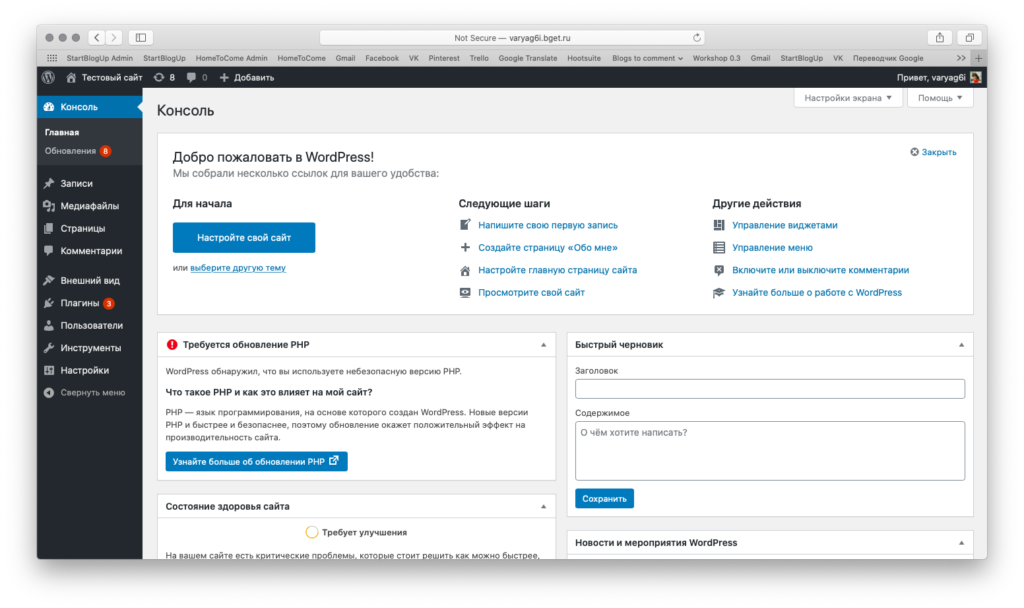 Создание сайта на WordPress