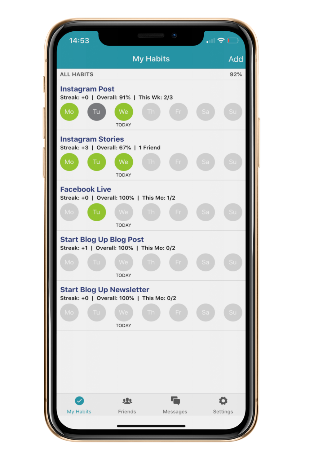 У меня на телефоне стоит бесплатное приложение HabitShare. Я прописала в нём свои цели по публикациям и отмечаю выполненные и пропущенные задачи. А приложение показывает мне сводку моей результативности по этим целям за неделю и за месяц.