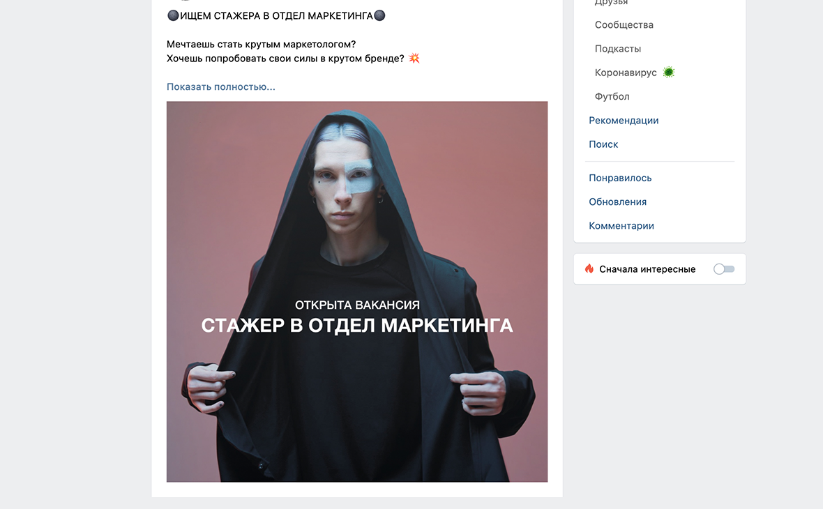 Чтобы найти сотрудников, компании часто настраивают таргетированную рекламу на подписчиков нескольких тематических групп