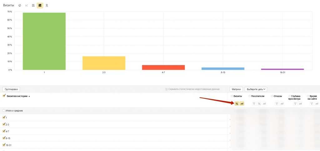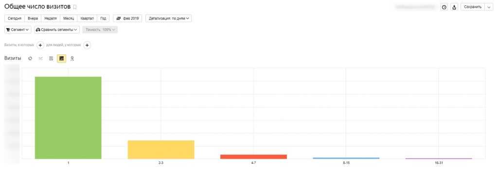 Для примера. Отчет «Аудитория» > «Общее число визитов». Мы увидим, сколько людей какое количество раз заходили на сайт.
