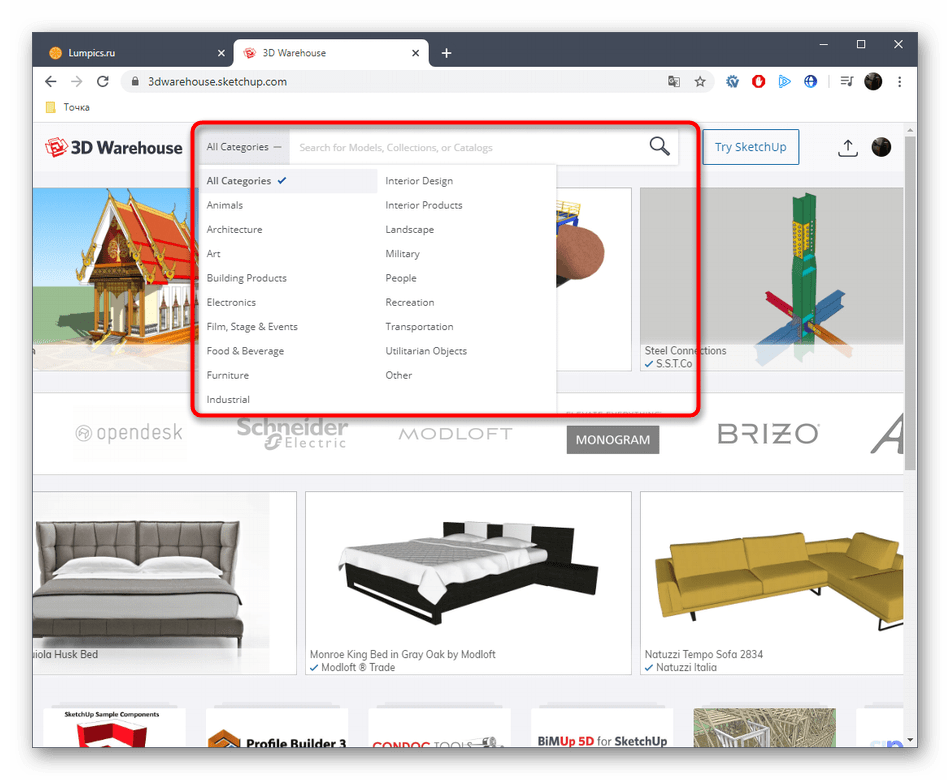 Не все пользователи желают самостоятельно создавать модели, которые в будущем будут отправляться в печать. В таких случаях можно загрузить уже готовый проект, отредактировать его, а уже потом экспортировать в подходящем формате. Для этого используется официальный ресурс от разработчиков SketchUp.