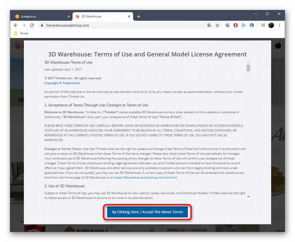 - Воспользуйтесь ссылкой выше, чтобы попасть на главную страницу сайта для поиска моделей. Там подтвердите лицензионное соглашение для начала использования.