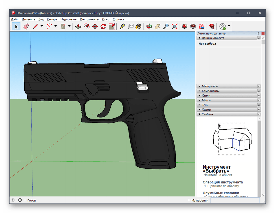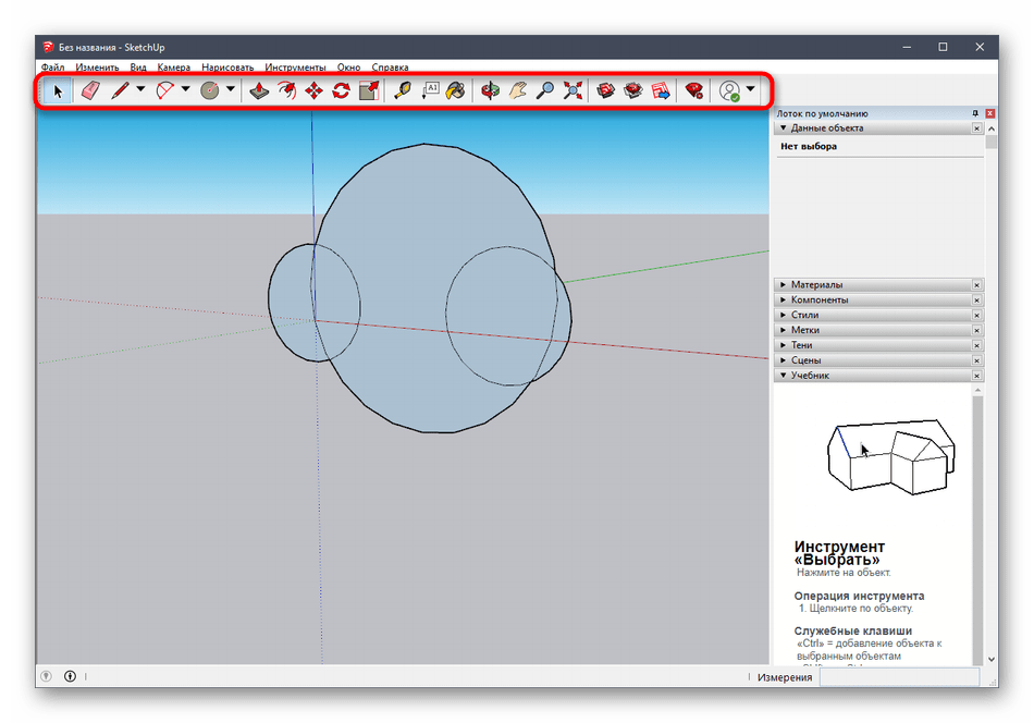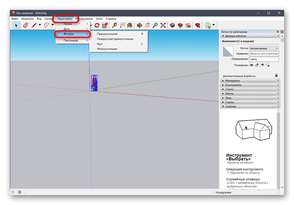 Сначала предлагаем ознакомиться с основным принципом взаимодействия с SketchUp, чтобы понять, как именно осуществляется добавление и управление моделями. Далее мы оставим ссылку и на обучающие материалы, если вы захотите изучить это решение более детально.