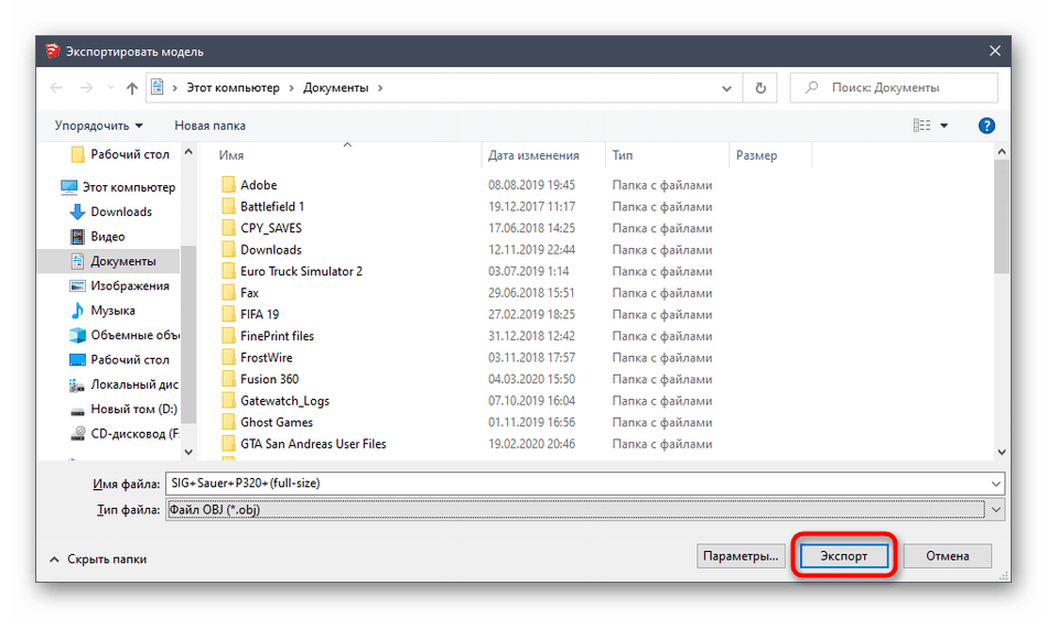 В завершение остается только экспортировать готовый проект для дальнейшей печати на имеющемся устройстве. Вы уже знаете, в каком именно формате нужно сохранять файл, а производится это так: