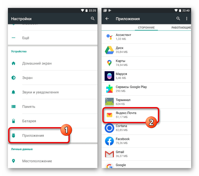 - Откройте «Настройки» и перейдите на страницу «Приложения». Здесь необходимо найти «Яндекс.Почту» для просмотра подробной информации.