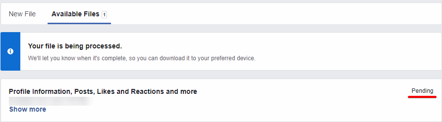 5. Вы можете проверить ход выполнения во вкладке Доступные файлы. Если ваш файл все еще находится в работе, ваш архив будет помечен как «Ожидание», пока он не будет готов к загрузке: