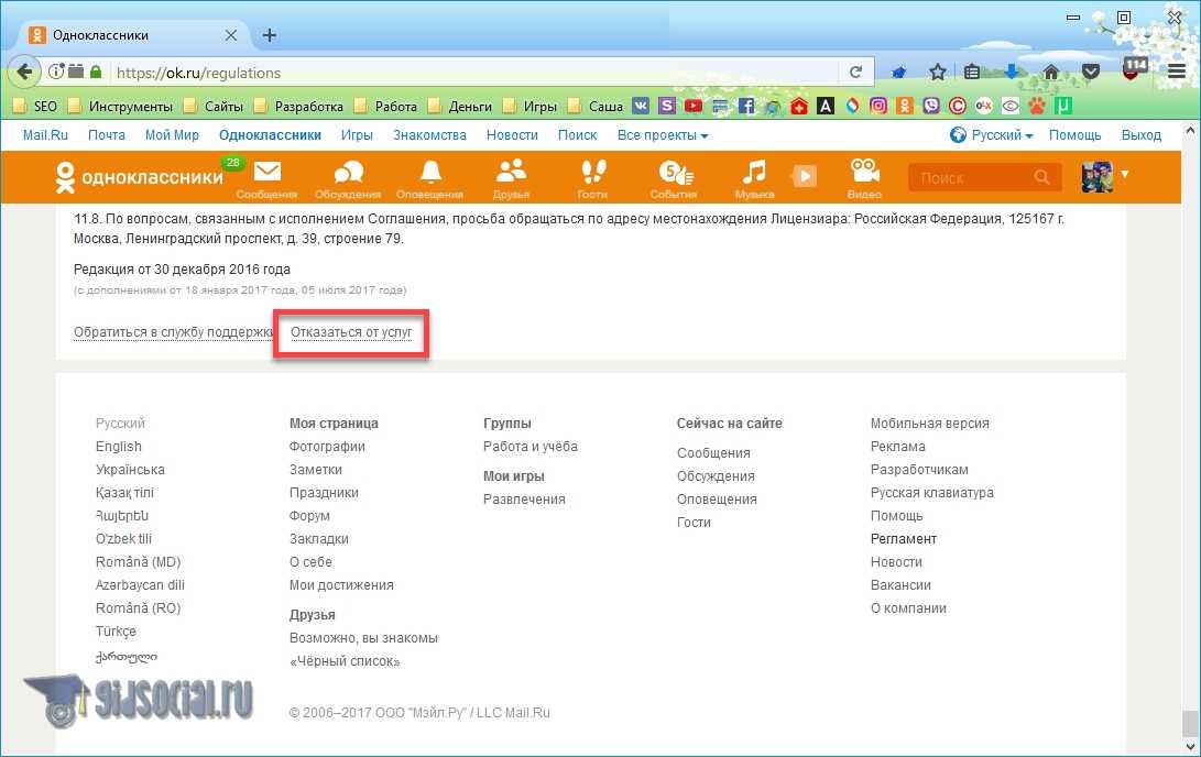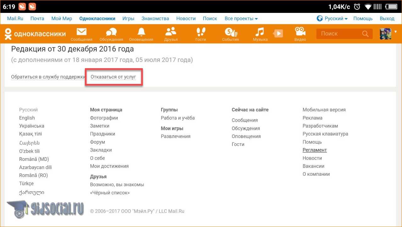 - Далее отказываемся от услуг социальной сети ОК.
