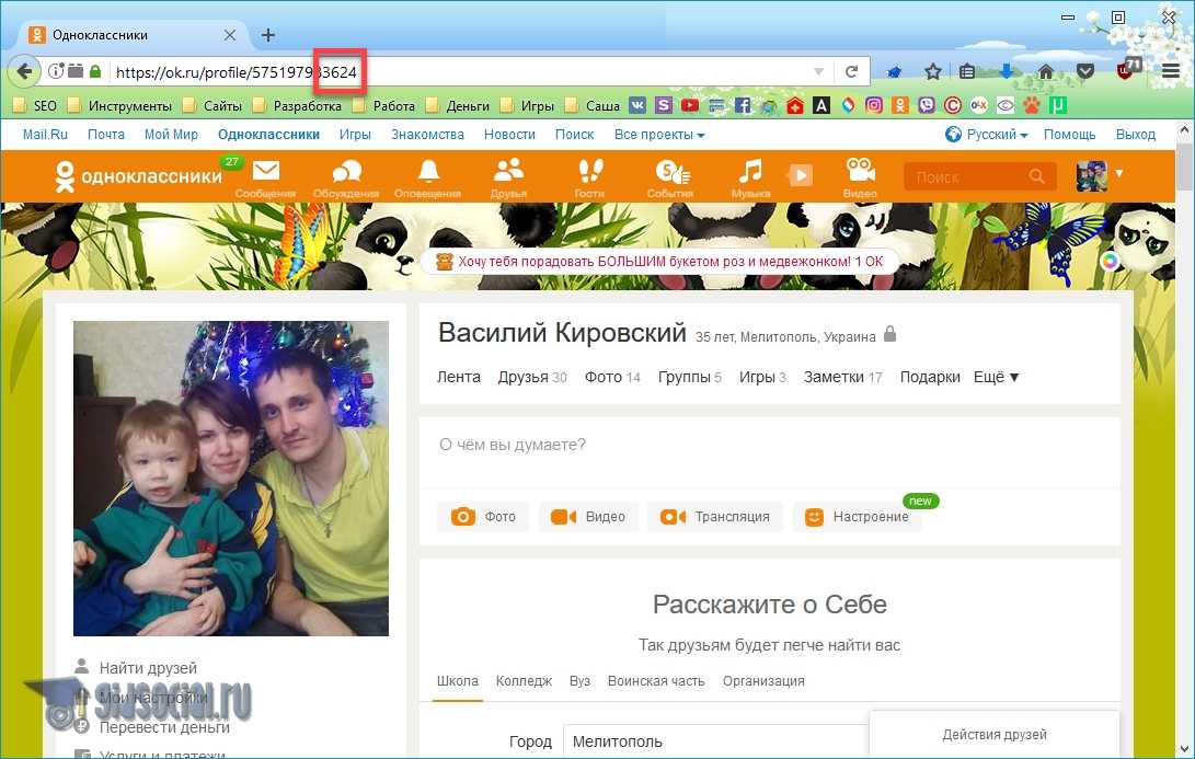 Например, если ID вашего профиля – www.odnoklassniki.ru/profile/111116211180, вам нужно вставить в ссылку число . Хотя, как показывает опыт, нужная страница открывается с любыми цифрами.