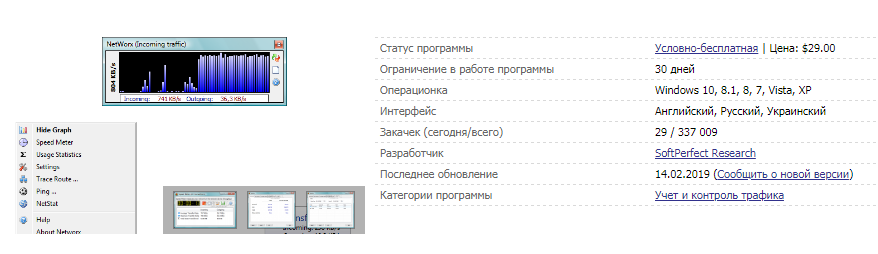 Эта программа не сможет определять отдельные программы, использующие трафик, однако она очень хороша для отчетности. Ее основной плюс — наличие русского языка в настройках. Пользоваться программой бесплатно можно в течение первых 30 дней, дальше за нее нужно платить 29,99 $/год.