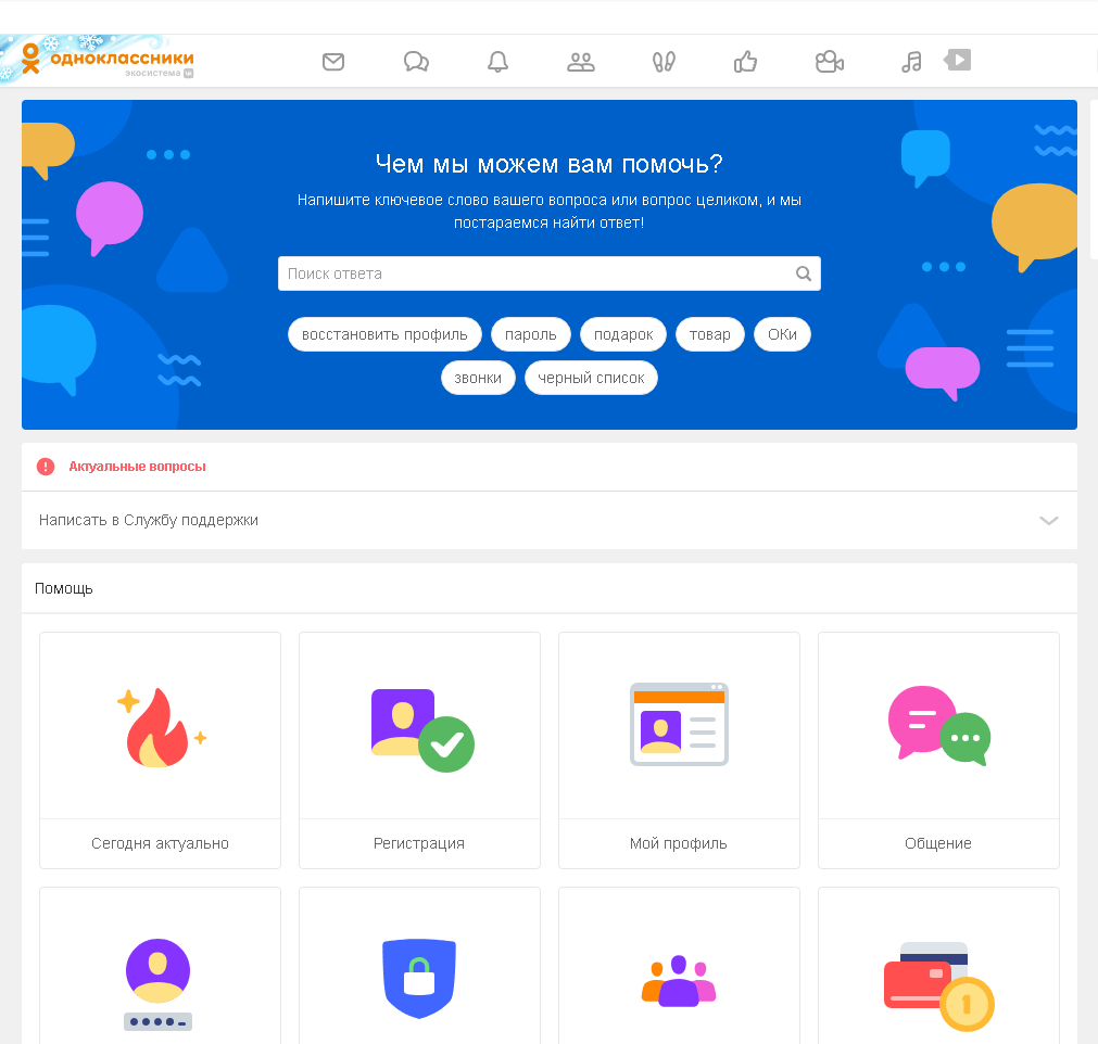 Если вы вдруг нашли пользователя, который выдает себя за вас и даже взял себе ваши фотографии, вам необходимо обратиться в службу поддержки Одноклассников. Для этого нажмите на кнопку «Помощь», которая находится рядом с кнопкой «Выход» в верхней части экрана или в самом его низу.