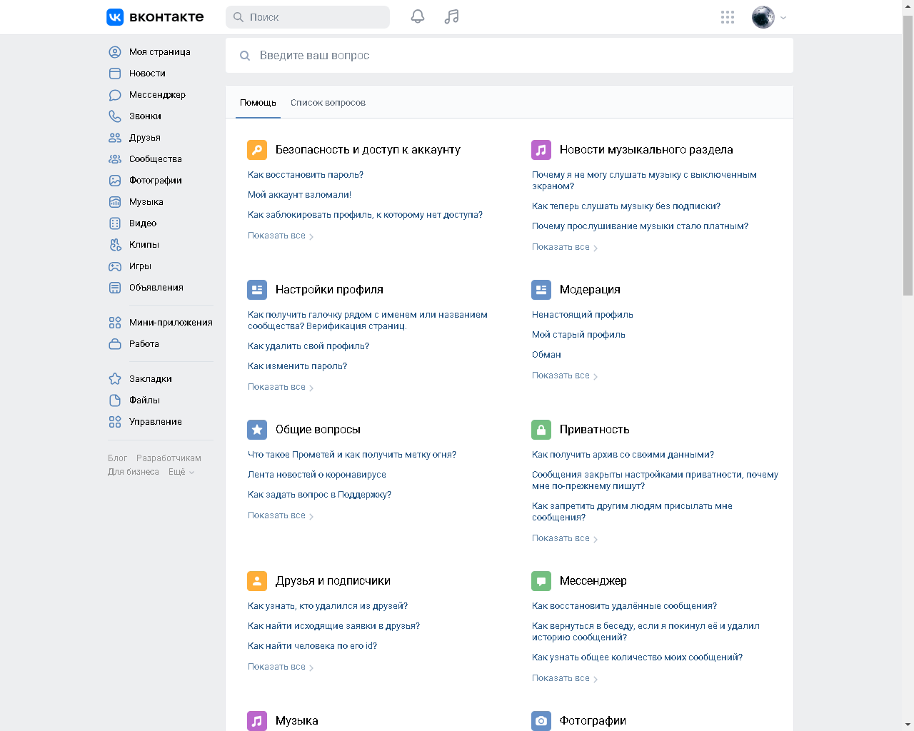 Подобный способ обращения в Службу поддержки есть и в социальной сети «ВКонтакте» (Рис.4)
